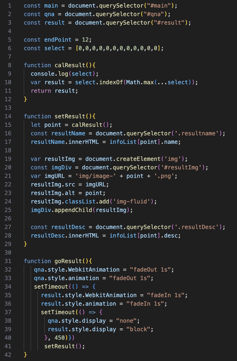 HTML / JS / CSS를 이용하여 본인만의 MBTI 테스트 사이트를 제작하고,